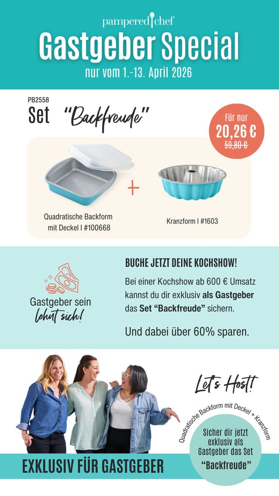 Lasst euch überraschen und schaut hier, welche aktuellen Kundenaktionen euch bei Pampered Chef® erwarten.