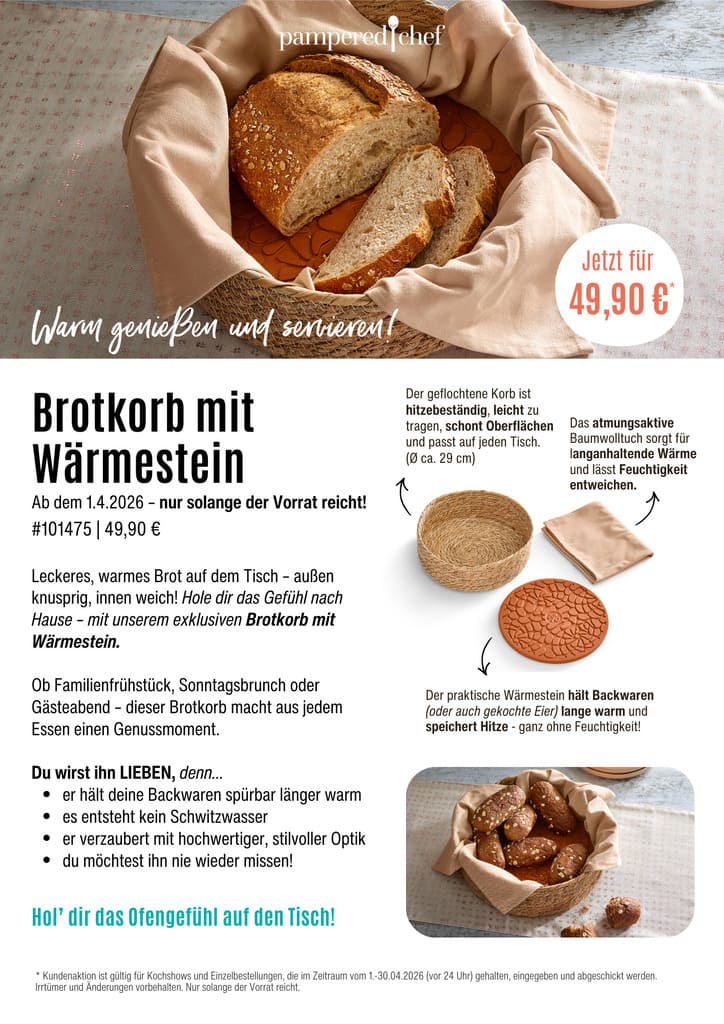 Kundenaktion vom 01.- 13. April gibt es die Quadratische Ofenhexe® mit Servierhexe in grau für 99 € statt für 119,90 € und vom 1.- 30. April 2026 gibt es außerdem noch den Brotkorb mit Wärmestein ( Beschreibung ) für 49,90 € sind sie das Highlight für jeden Tisch!